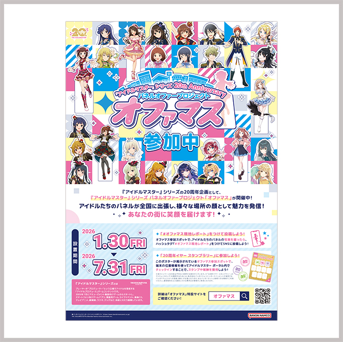 株式会社バンダイナムコエンターテインメント(以下、弊社といいます)は、『アイドルマスター』シリーズ 20th Anniversary パネルオファープロジェクト「オファマス」(以下、本企画といいます)に参加いただける企業、自治体の皆さまを募集いたします。